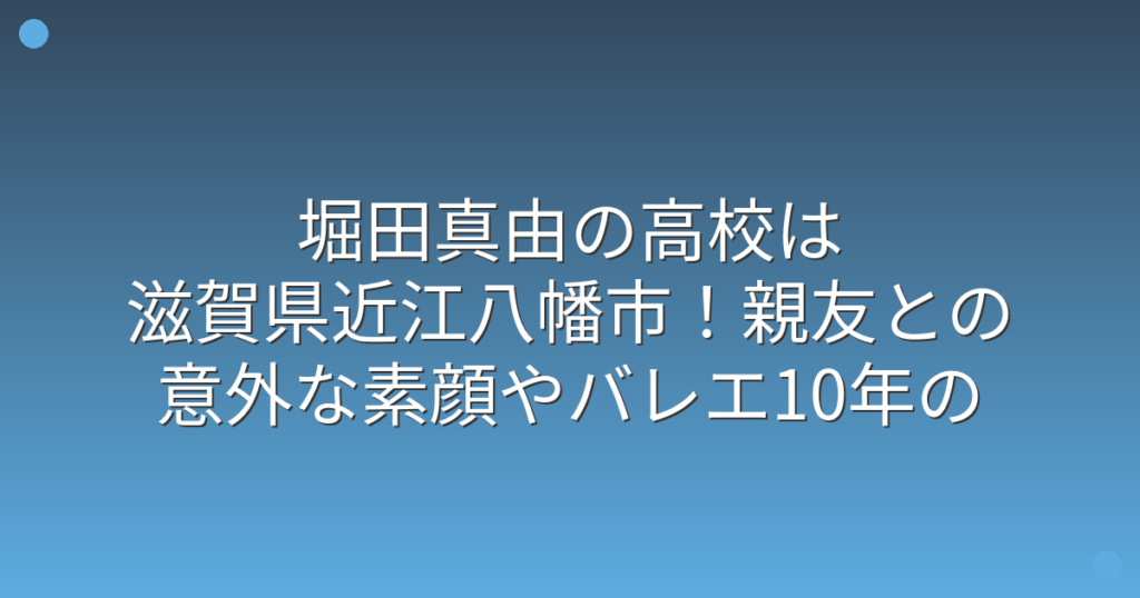 堀田真由の高校は滋賀県近江八幡市!親友との意外な素顔やバレエ10年の青春時代を調査!