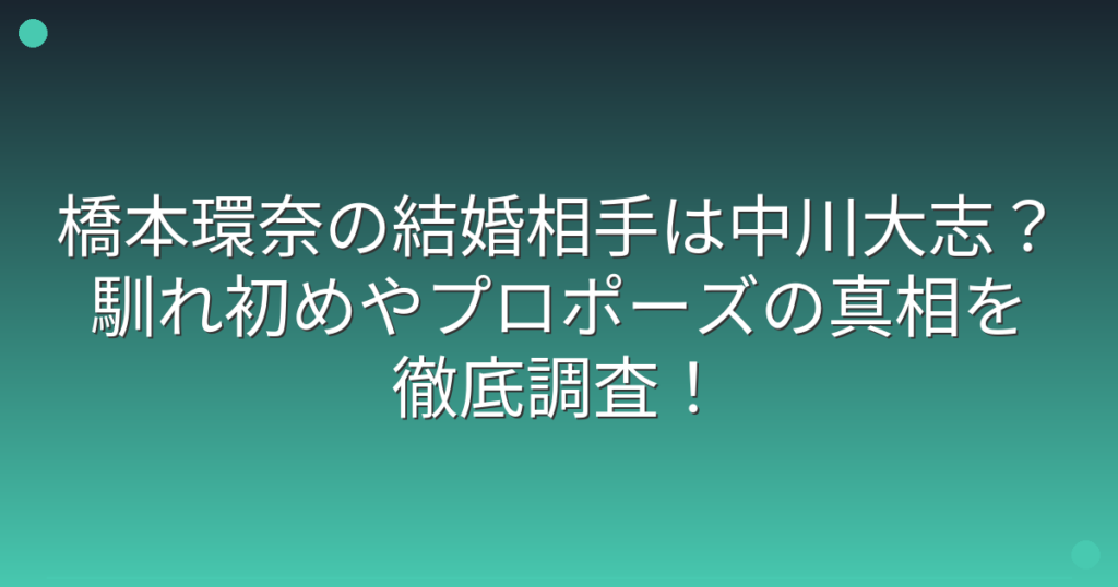 人気女優の橋本環奈さんと俳優の中川大志さんの結婚が話題になっていますね。 2025年7月に女性セブンが報じた婚約・結婚準備の報道以降、SNSやメディアで大きな注目を集めています。 ファンの間では「本当に結婚するの?」「いつ発表されるの?」という声... -