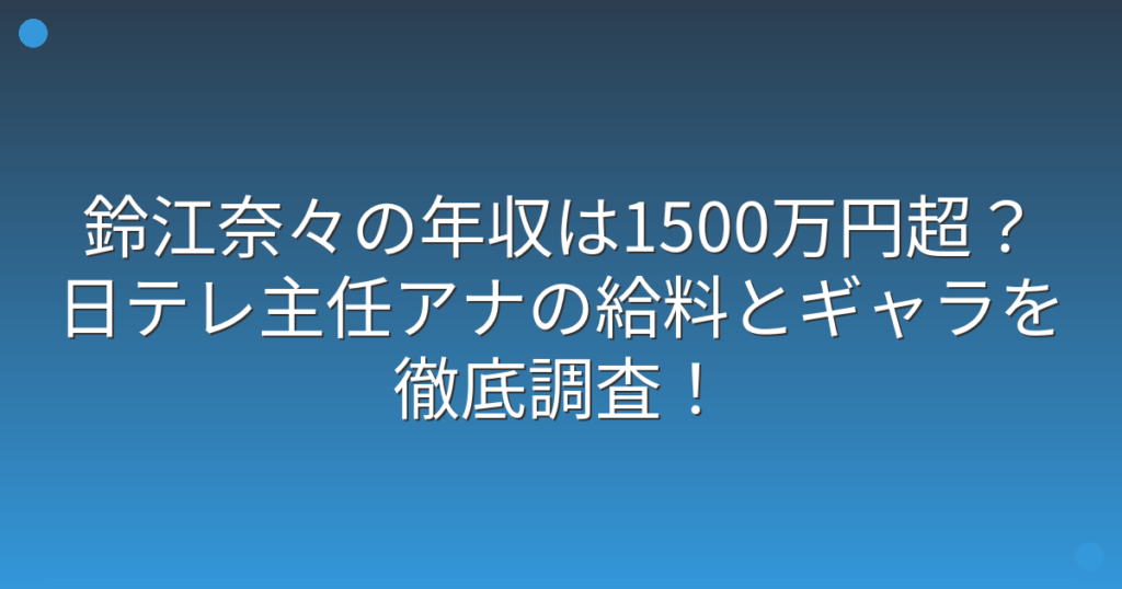 鈴江奈々の年収は1500万円超?日テレ主任アナの給料とギャラを徹底調査!