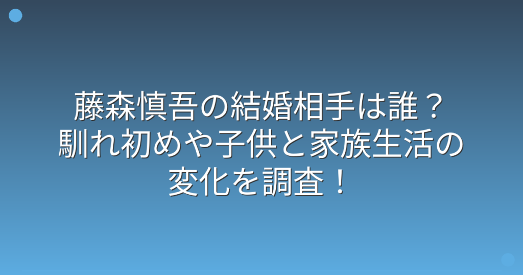 藤森慎吾の結婚相手は誰?馴れ初めや子供と家族生活の変化を調査!