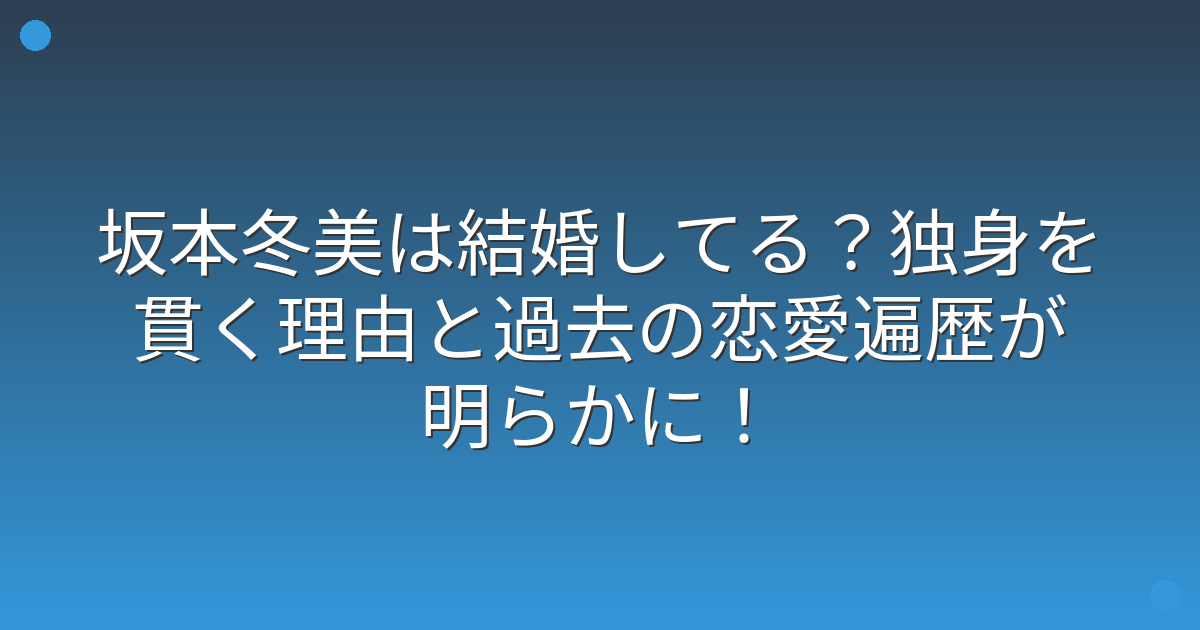 華やかな芸能界で活躍する坂本冬美さんの結婚事情や恋愛について、気になっている方も多いのではないでしょうか。