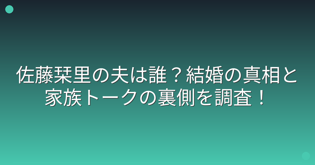 今回は、佐藤栞里さんの夫の存在や結婚の真相、そして家族トークの内容についてお伝えしてきました。
