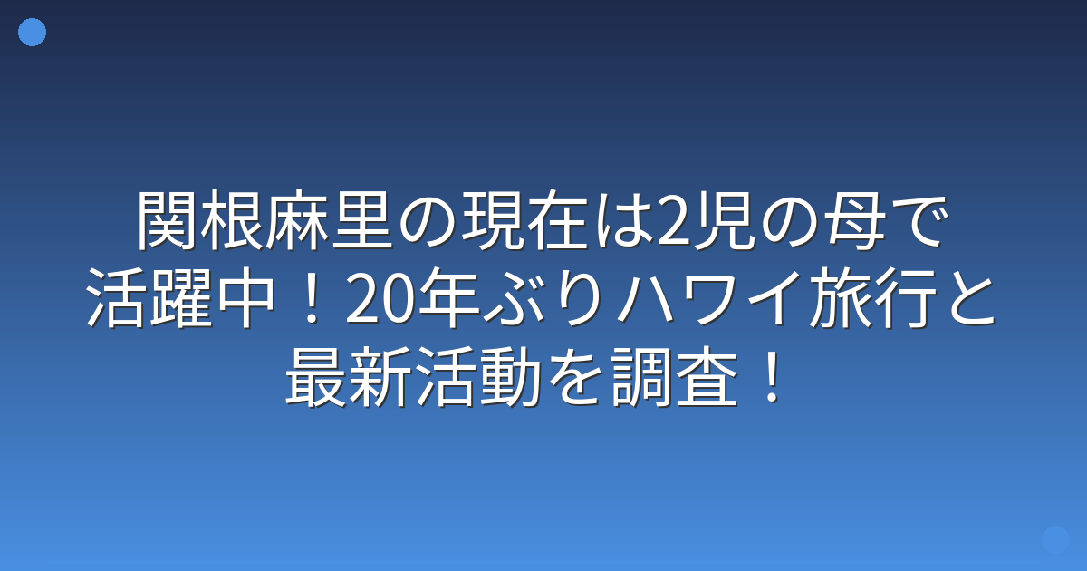 そこで今回は、関根麻里さんの現在の活動状況や家族構成、最新のメディア出演情報について詳しく見ていきましょう!