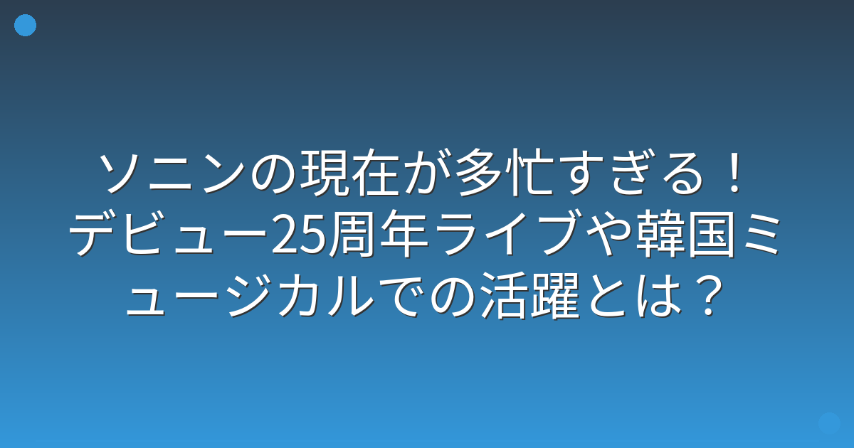 今回はそんなソニンさんの現在の活動内容、25周年記念ライブの詳細、そして韓国ミュージカルでの取り組みについて詳しくご紹介します!