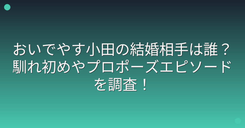 おいでやす小田の結婚相手は誰?馴れ初めやプロポーズエピソードを調査!