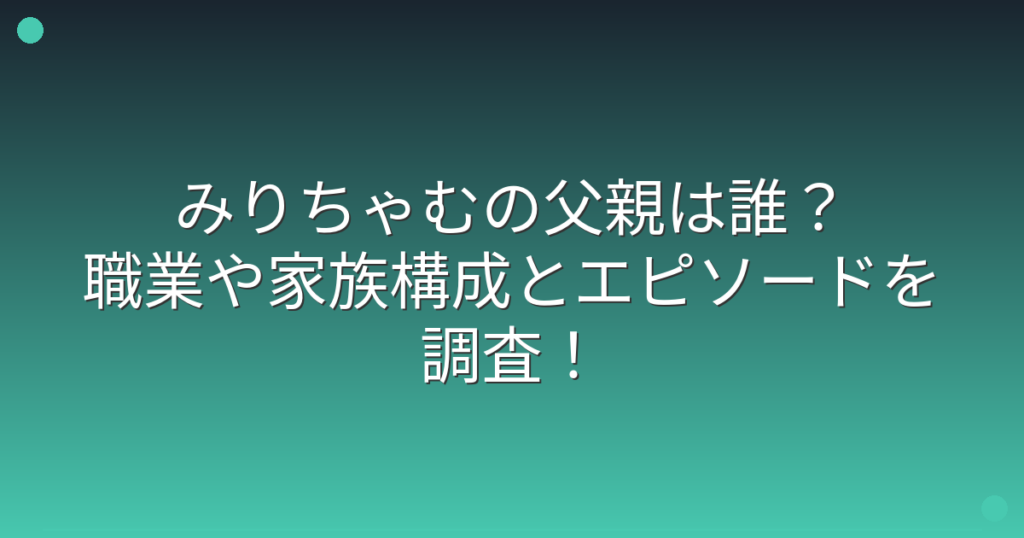 人気モデルでタレントのみりちゃむさんの父親について、ファンの間で話題になっていますね。 みりちゃむさんといえば、ギャルモデルとして活躍し、現在ではバラエティ番組でも人気を集めています。 そんなみりちゃむさんを育てた父親とは一体どんな人物な...