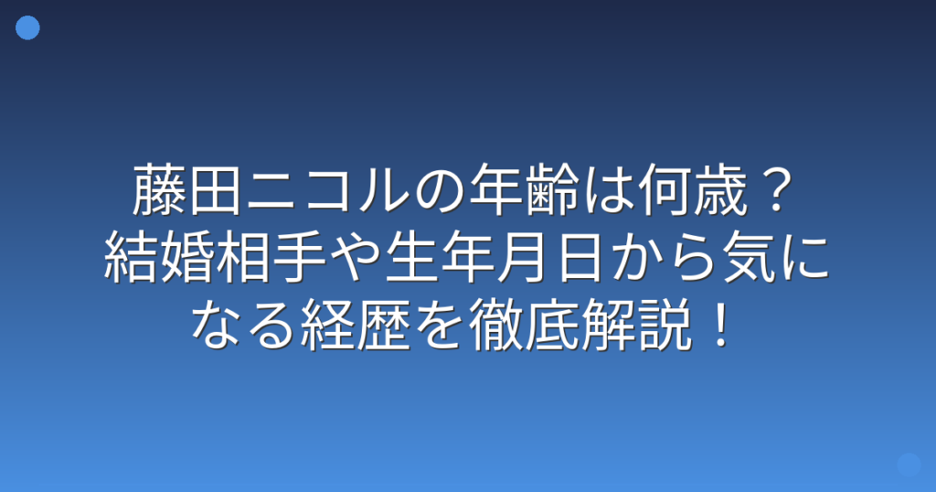 藤田ニコルの年齢は何歳?結婚相手や生年月日から気になる経歴を徹底解説!