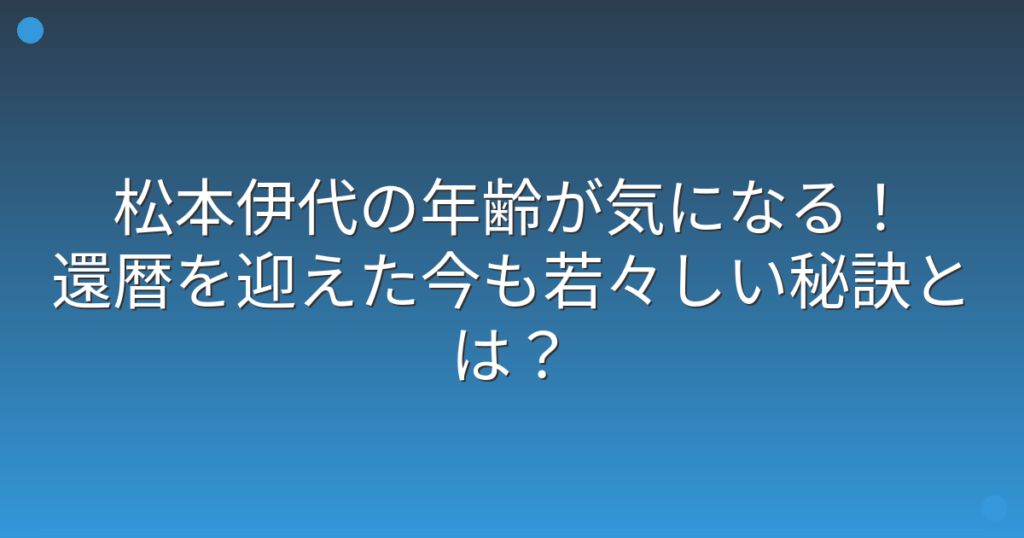 松本伊代の年齢が気になる!還暦を迎えた今も若々しい秘訣とは?