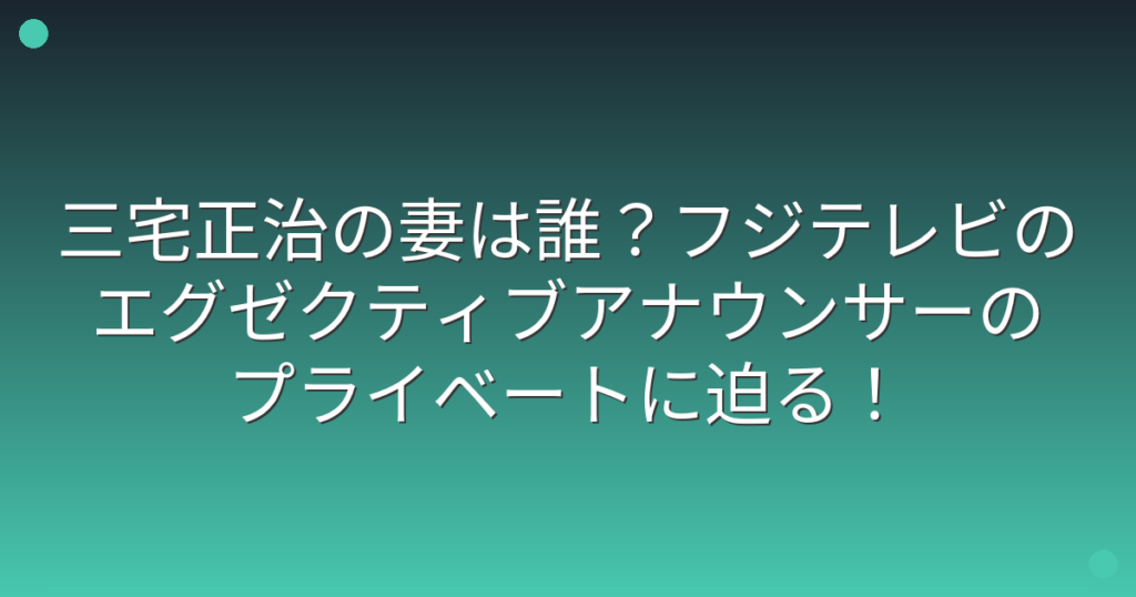三宅正治の妻は誰?フジテレビのエグゼクティブアナウンサーのプライベートに迫る!