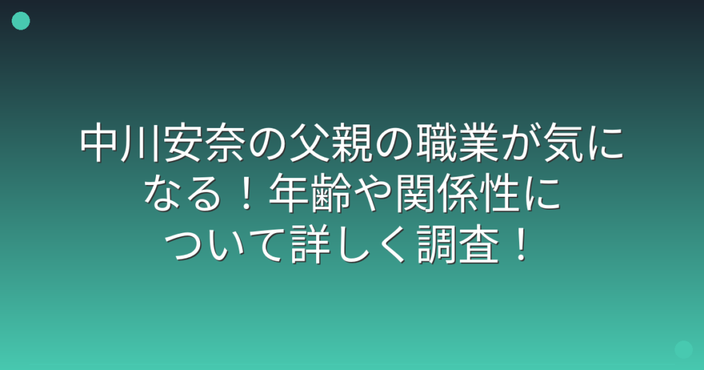 中川安奈の父親の職業が気になる!年齢や関係性について詳しく調査!