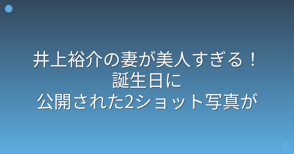 井上裕介の妻が美人すぎる!誕生日に公開された2ショット写真が話題に?