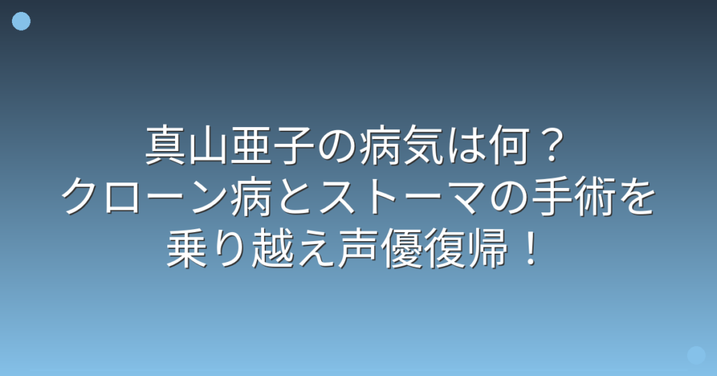 真山亜子の病気は何?クローン病とストーマの手術を乗り越え声優復帰!