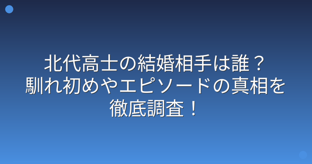 北代高士の結婚相手は誰?馴れ初めやエピソードの真相を徹底調査!