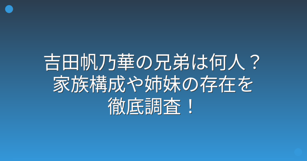 吉田帆乃華の兄弟は何人?家族構成や姉妹の存在を徹底調査!