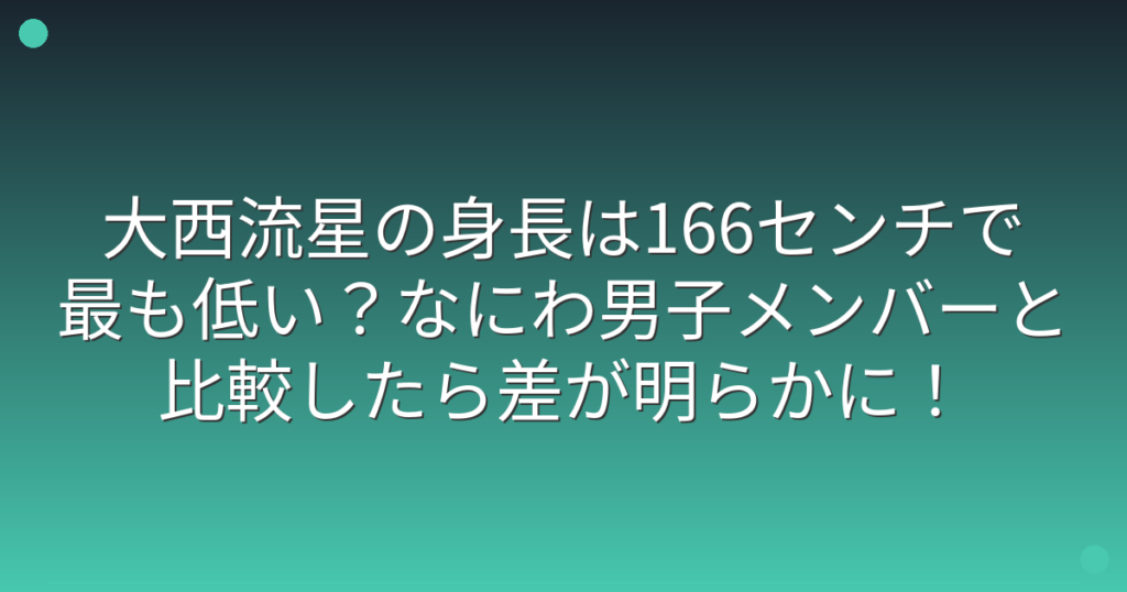 なにわ男子の大西流星さんといえば、そのキュートなルックスと抜群のパフォーマンス力で人気を集めていますね。 ファンの間では大西流星さんの身長について話題になることも多く、グループ内での身長差が気になっている方も多いのではないでしょうか。 そ...