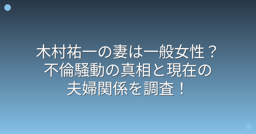木村祐一の妻は一般女性?不倫騒動の真相と現在の夫婦関係を調査!