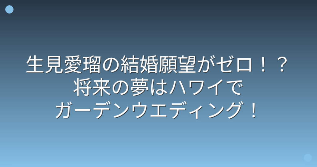 生見愛瑠の結婚願望がゼロ!?将来の夢はハワイでガーデンウエディング!