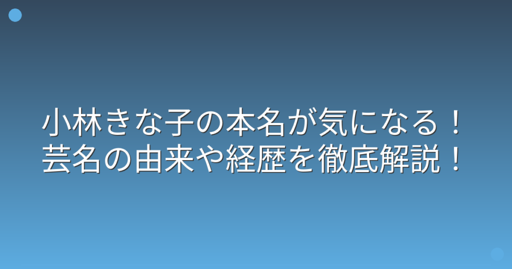 小林きな子の本名が気になる!芸名の由来や経歴を徹底解説!