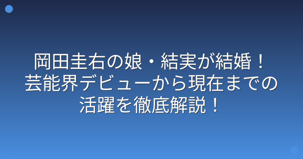 岡田圭右の娘・結実が結婚!芸能界デビューから現在までの活躍を徹底解説!