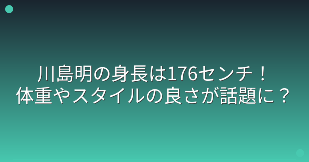お笑いコンビ・麒麟の川島明さんの身長について、気になる方が多いようですね。 バラエティ番組での活躍はもちろん、俳優としても注目を集める川島さんですが、そのスタイルの良さも話題になっています。 そこで今回は、川島明さんの身長や体重、体型につ... -