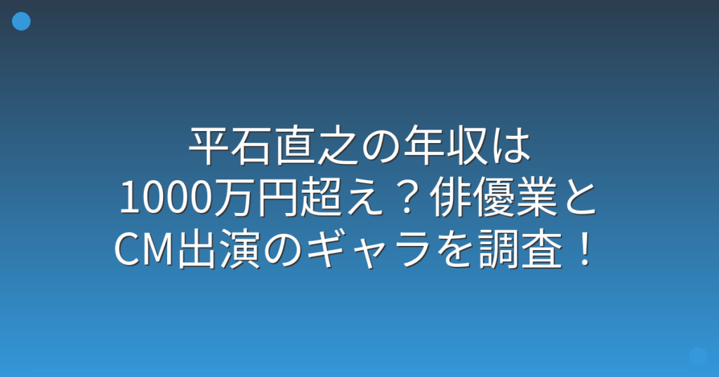 俳優として活躍する平石直之さんの年収が話題になっていますね。 ドラマやCMで見かける機会が増えた平石直之さんですが、一体どれくらい稼いでいるのか気になる方も多いのではないでしょうか。 そこで今回は、平石直之さんの年収や収入源について詳しく見...