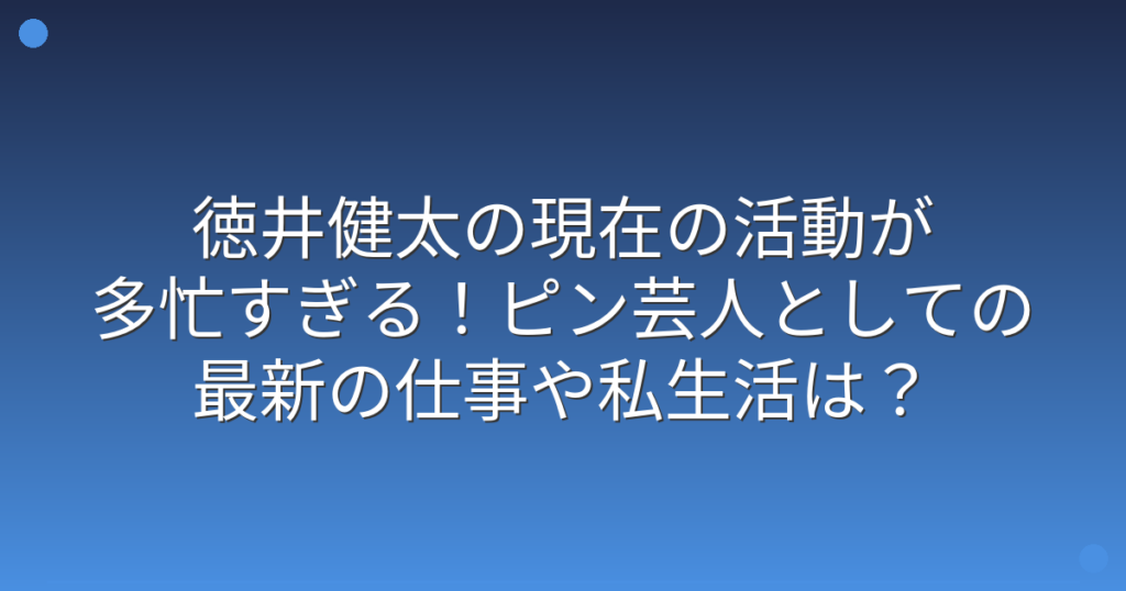 お笑いコンビ「平成ノブシコブシ」のツッコミ担当として知られる徳井健太さんですが、現在の活動が話題になっていますね。 相方の吉村崇さんとともに長年活躍してきた徳井健太さんですが、最近ではピン芸人としての活動も増えているようです。 そこで今回...