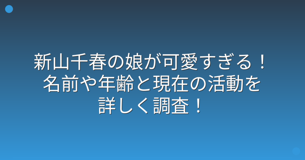 タレントの新山千春さんの娘さんが、SNSやメディアで話題になっていますね。 新山千春さんといえば、グラビアアイドルやタレントとして長年活躍されている方ですが、娘さんについて気になっている方も多いのではないでしょうか。 そこで今回は、新山千春さ...