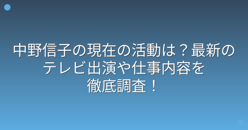 中野信子の現在の活動は?最新のテレビ出演や仕事内容を徹底調査!