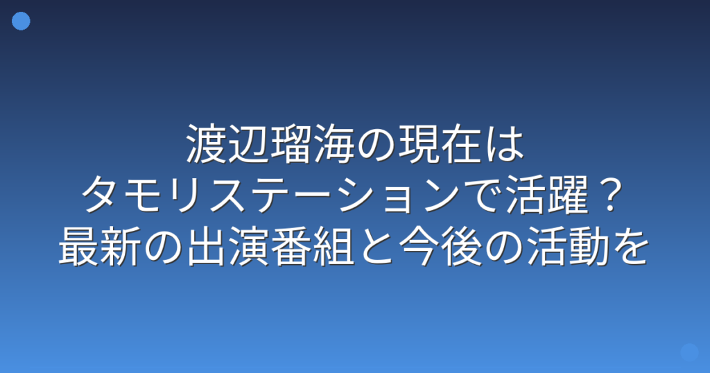 渡辺瑠海の現在はタモリステーションで活躍?最新の出演番組と今後の活動を調査!