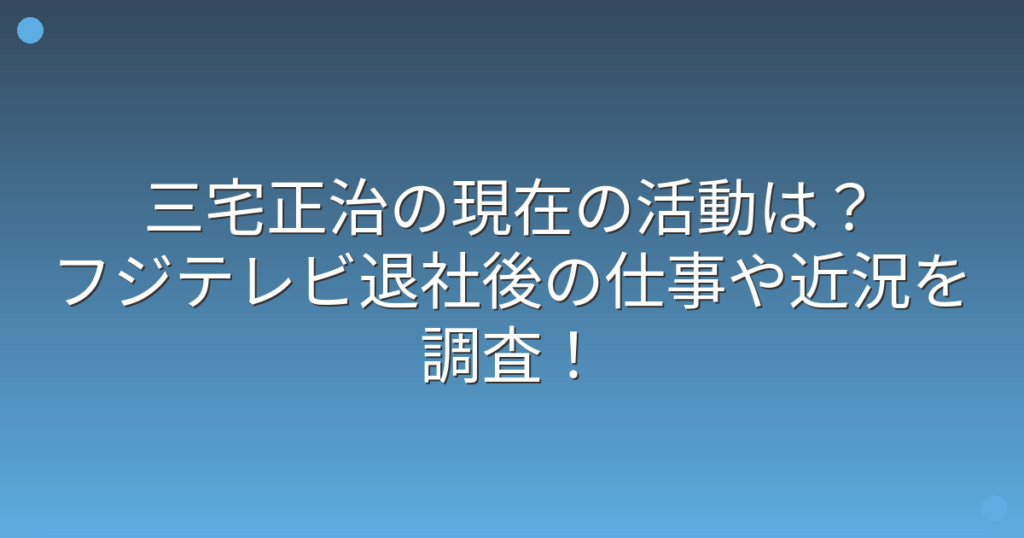 三宅正治の現在の活動は?フジテレビ退社後の仕事や近況を調査!