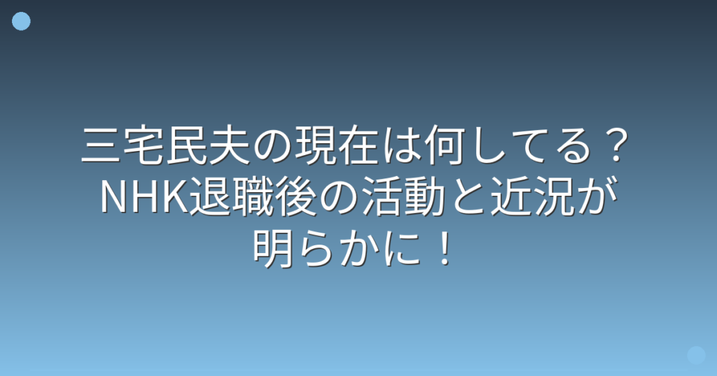 三宅民夫の現在は何してる?NHK退職後の活動と近況が明らかに!