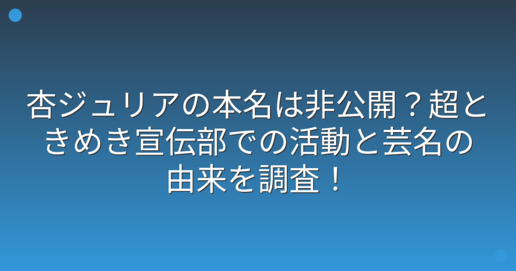杏ジュリアの本名は非公開?超ときめき宣伝部での活動と芸名の由来を調査!