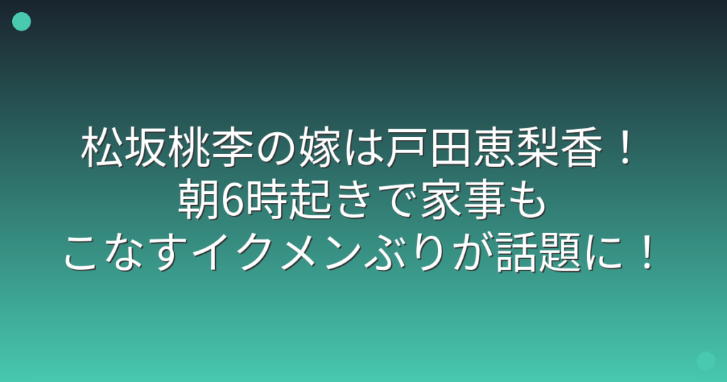 俳優の松坂桃李さんと戸田恵梨香さんの結婚生活が、最近メディアで大きな話題となっています。 特に松坂さんの家事や育児への積極的な姿勢が注目を集めているようです。 そこで今回は、松坂桃李さんの嫁である戸田恵梨香さんとの結婚生活や、話題のイクメ... -