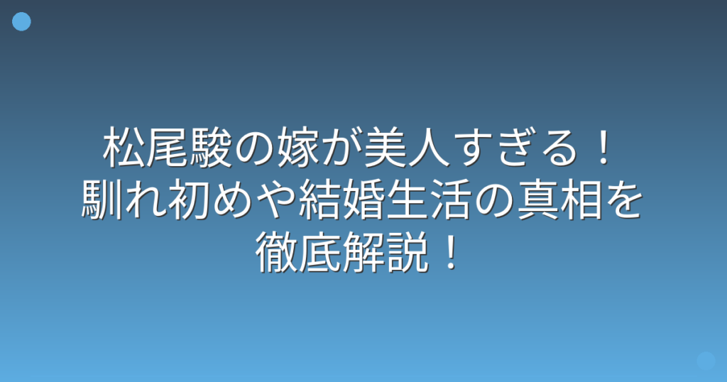 松尾駿の嫁が美人すぎる!馴れ初めや結婚生活の真相を徹底解説!