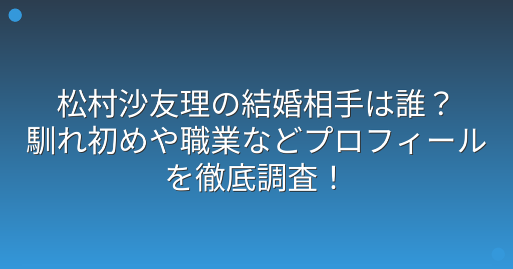元乃木坂46のメンバーとして活躍していた松村沙友理さんの結婚相手について、ファンの間で話題になっていますね。 卒業後も女優やタレントとして活動を続けている松村沙友理さんですが、結婚相手はどんな方なのか気になります。 そこで今回は、松村沙友理...