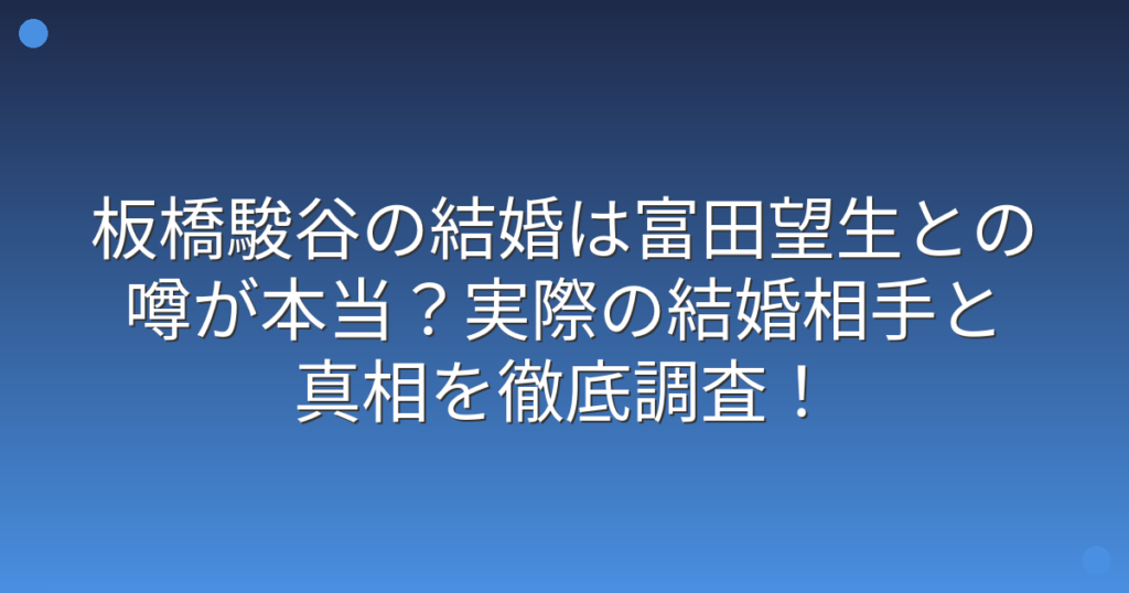 板橋駿谷の結婚は富田望生との噂が本当?実際の結婚相手と真相を徹底調査!