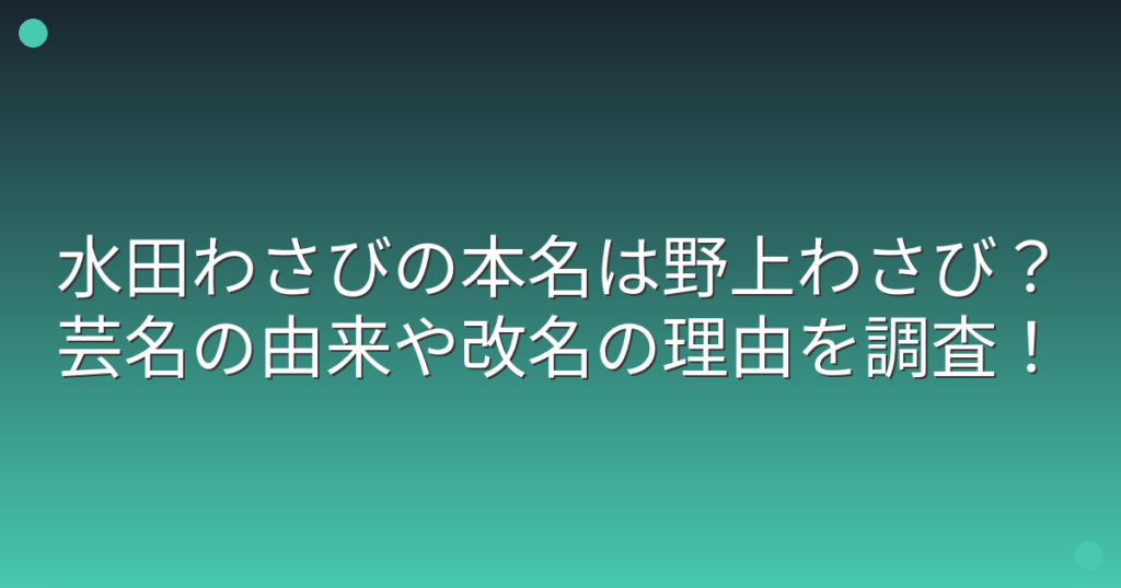 水田わさびの本名は野上わさび?芸名の由来や改名の理由を調査!
