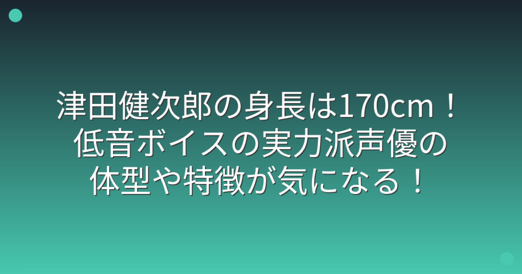 津田健次郎の身長は170cm!低音ボイスの実力派声優の体型や特徴が気になる!