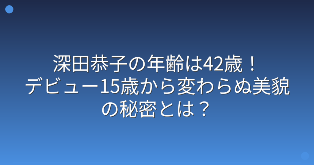 芸能界を代表する美女として知られる深田恭子さんが、40代に入っても変わらぬ美しさで話題になっていますね。 デビューから25年以上経った今でも、その若々しい容姿は多くの人々を魅了し続けています。 そこで今回は、深田恭子さんの年齢や経歴、変わらぬ... -