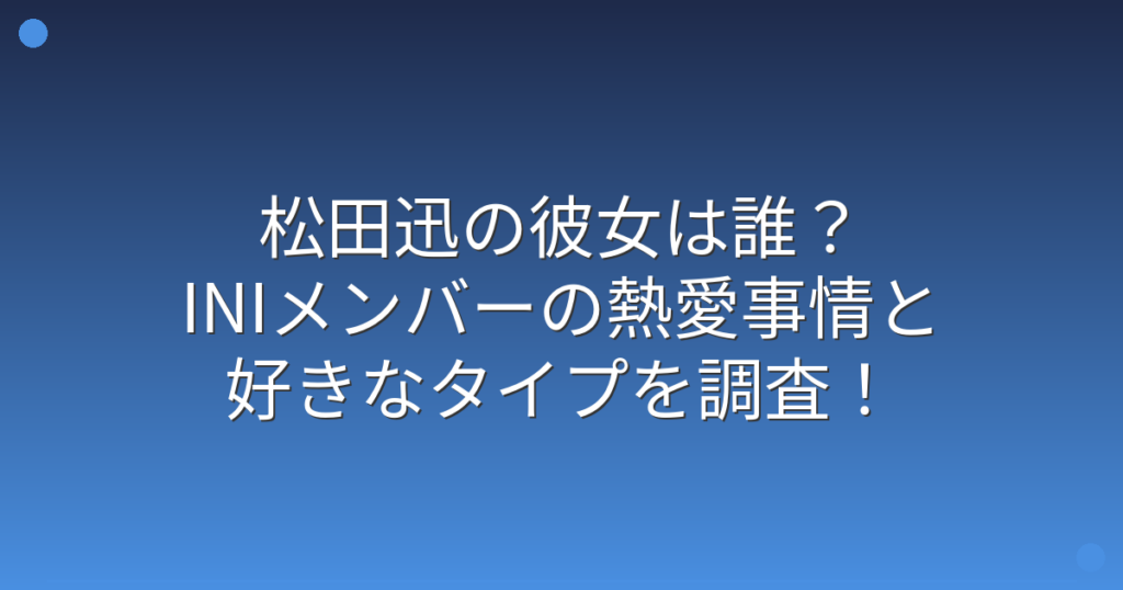 松田迅の彼女は誰?INIメンバーの熱愛事情と好きなタイプを調査!