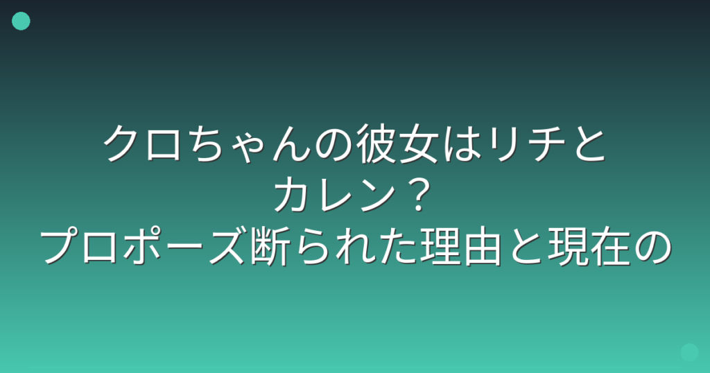 クロちゃんの彼女はリチとカレン?プロポーズ断られた理由と現在の交際状況を調査!