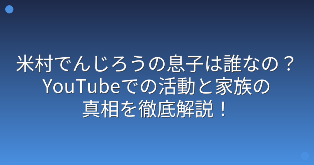 米村でんじろうの息子は誰なの?YouTubeでの活動と家族の真相を徹底解説!