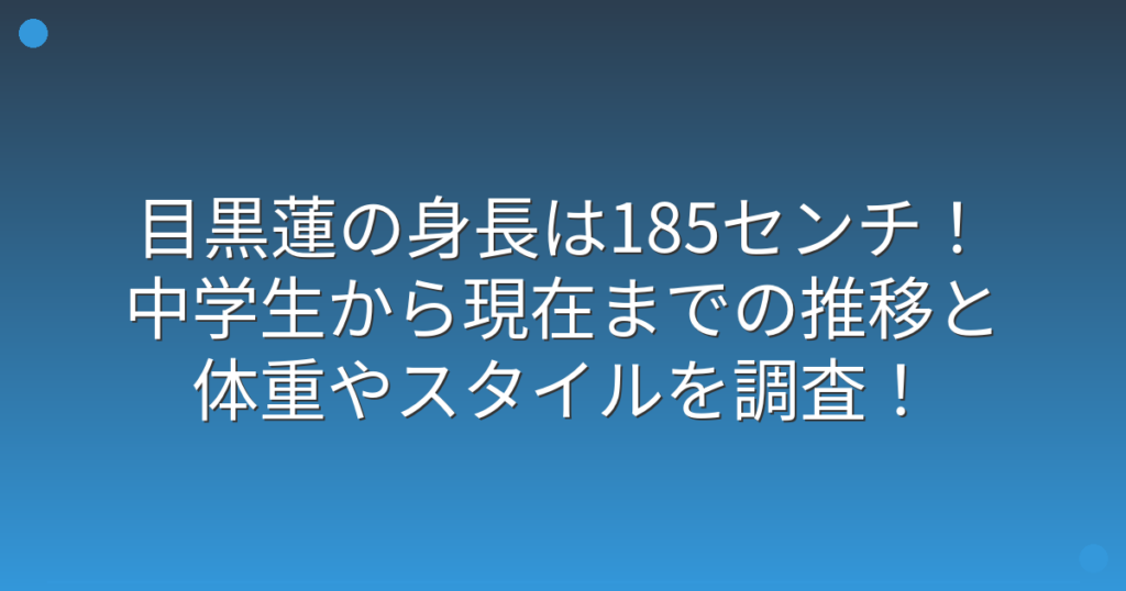 Snow Manのエースとして活躍する目黒蓮さんの身長が話題になっていますね。 モデルのようなスタイルと高身長を活かし、ハイブランドのアンバサダーを務めるなど、ファッション業界からも注目を集めています。 そこで今回は、目黒蓮さんの身長や体重、中学...