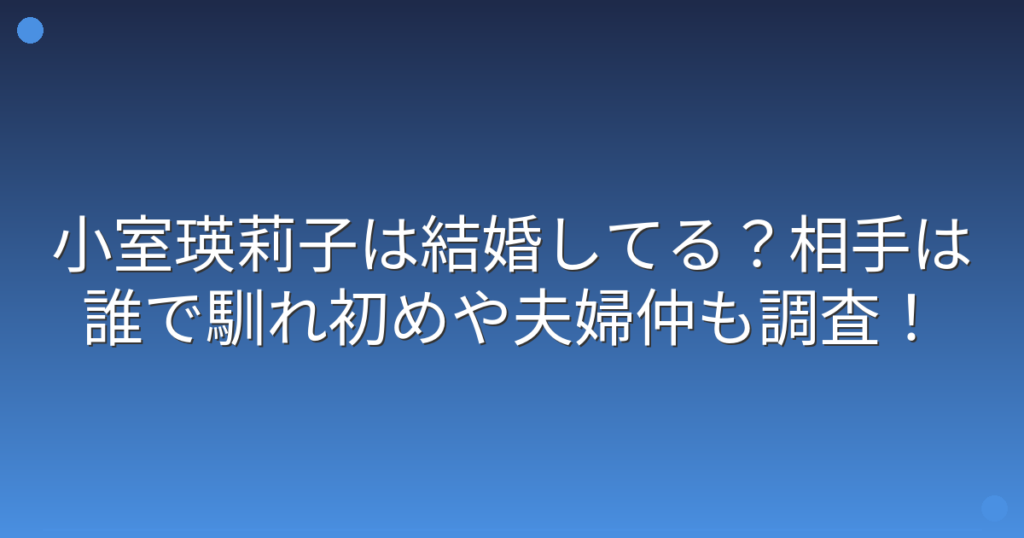 小室瑛莉子は結婚してる?相手は誰で馴れ初めや夫婦仲も調査!