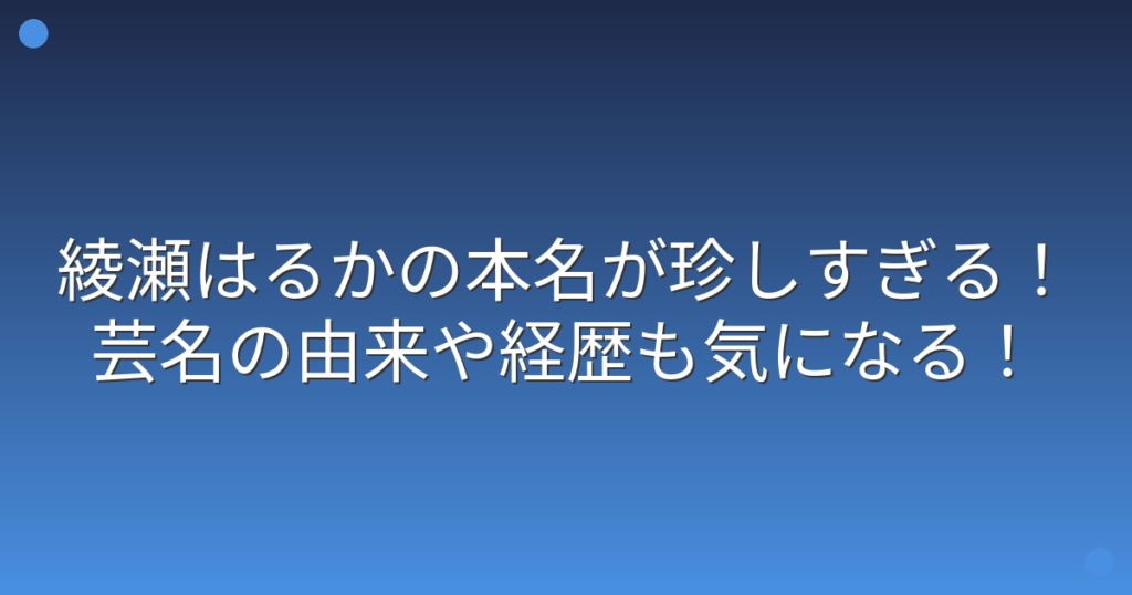 最近、2025年の『第76回NHK紅白歌合戦』の司会に抜擢され、再び注目を集めている綾瀬はるかさん。 多くのファンから支持される彼女ですが、実は本名が非常に珍しいことをご存知でしょうか。 そこで今回は、綾瀬はるかさんの本名や、芸名の由来、さらには経... -