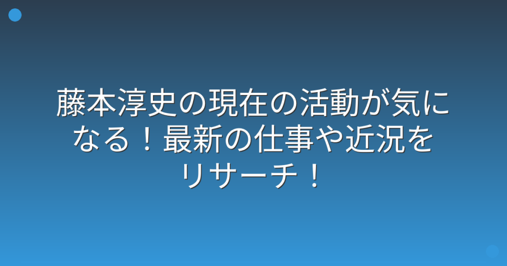 お笑いコンビ「FUJIWARA」のツッコミ担当として活躍してきた藤本淳史さんですが、最近の活動が気になっている方も多いのではないでしょうか。 テレビで見かける機会が以前と比べて変化しているという声もあり、現在どのような活動をされているのか注目が集...