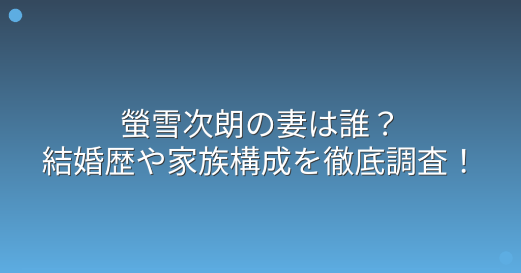 螢雪次朗の妻は誰?結婚歴や家族構成を徹底調査!