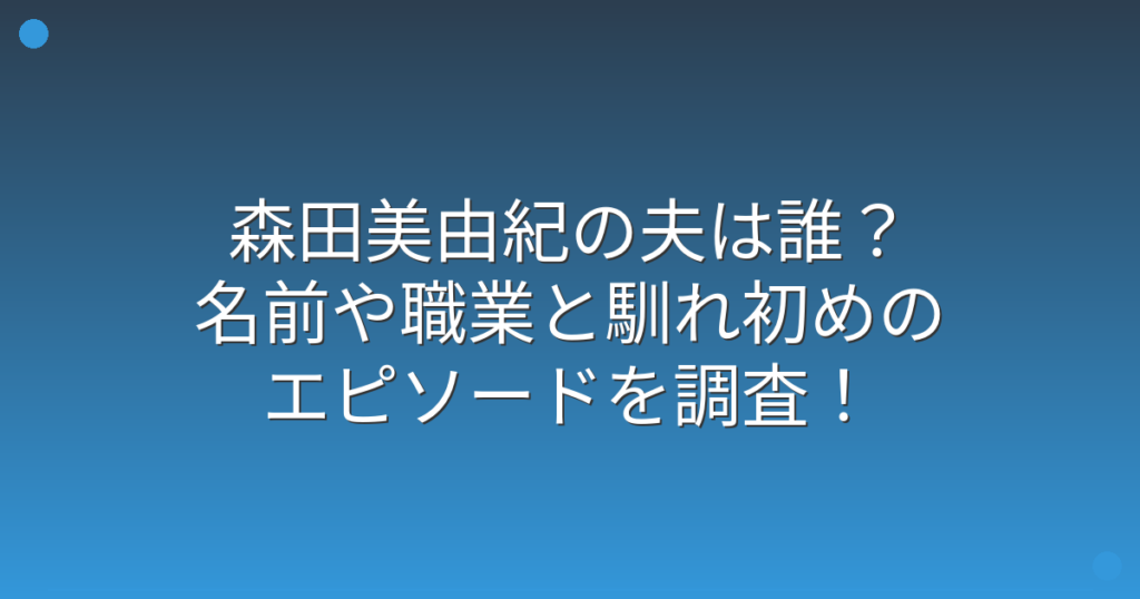森田美由紀の夫は誰?名前や職業と馴れ初めのエピソードを調査!
