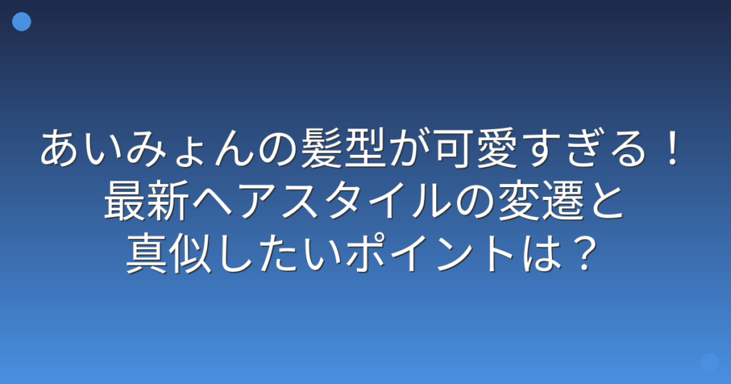 シンガーソングライターのあいみょんさんの髪型が、ファンの間で話題になっていますね。 独特な世界観を持つ楽曲だけでなく、そのファッションセンスやヘアスタイルにも注目が集まっています。 そこで今回は、あいみょんさんの髪型の変遷や最新のヘアスタ... -