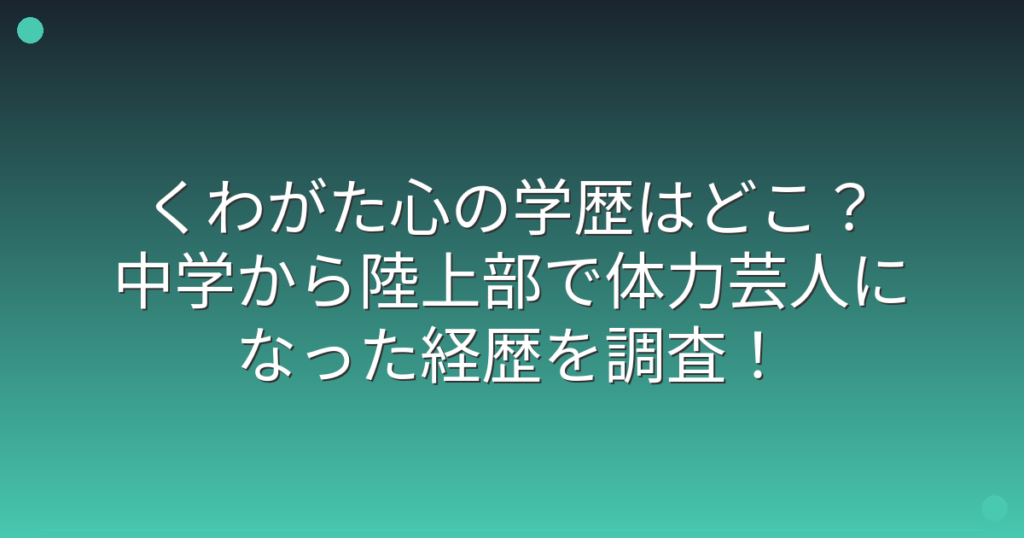 くわがた心の学歴はどこ?中学から陸上部で体力芸人になった経歴を調査!